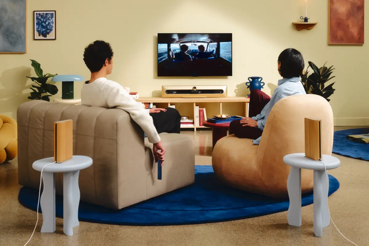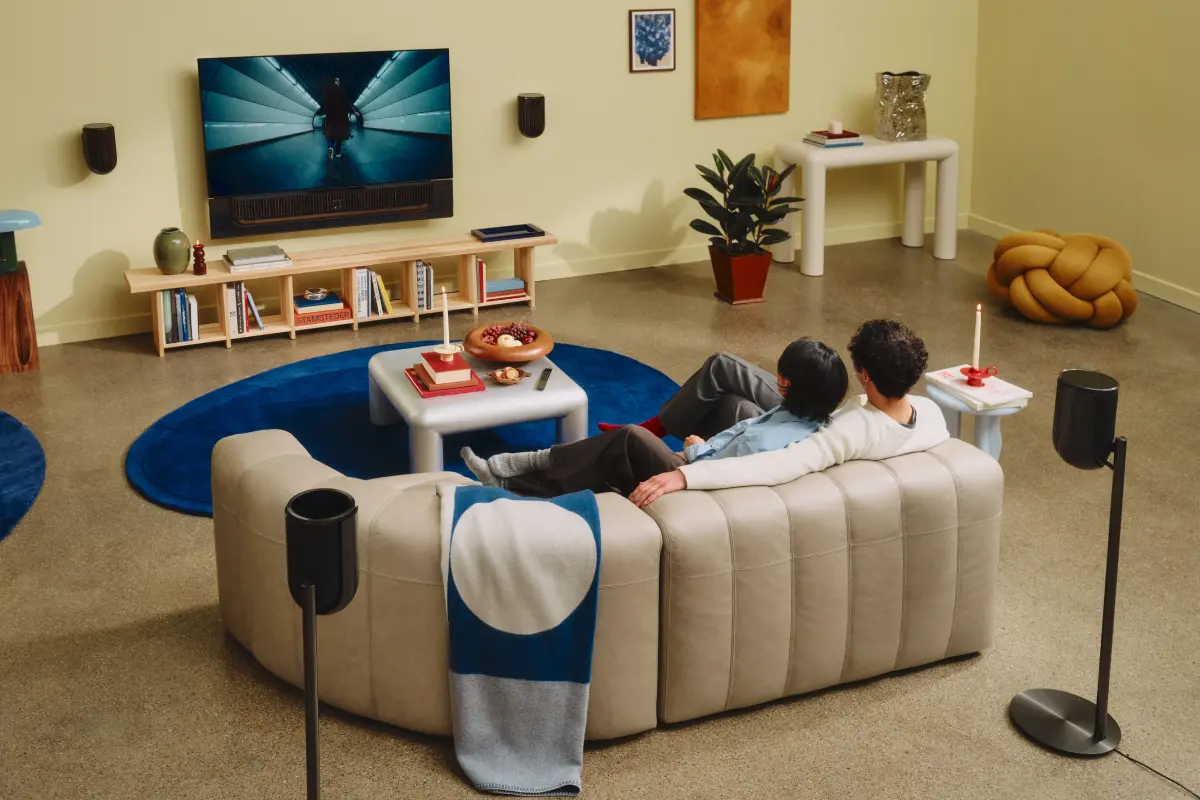 Το soundbar Beosound Premiere καλύπτει επάξια το εμπρόσθιο μέρος του ηχητικού σκηνικού ενώ τα δυο ηχεία Beosound Emerges προσθέτουν την ακρίβεια στο πίσω μέρος.